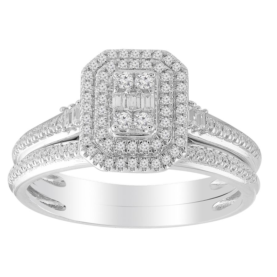 LADIES BRIDAL SET 0.33CT ROUND/BAGUETTE DIAMOND 10K WHITE GOLD