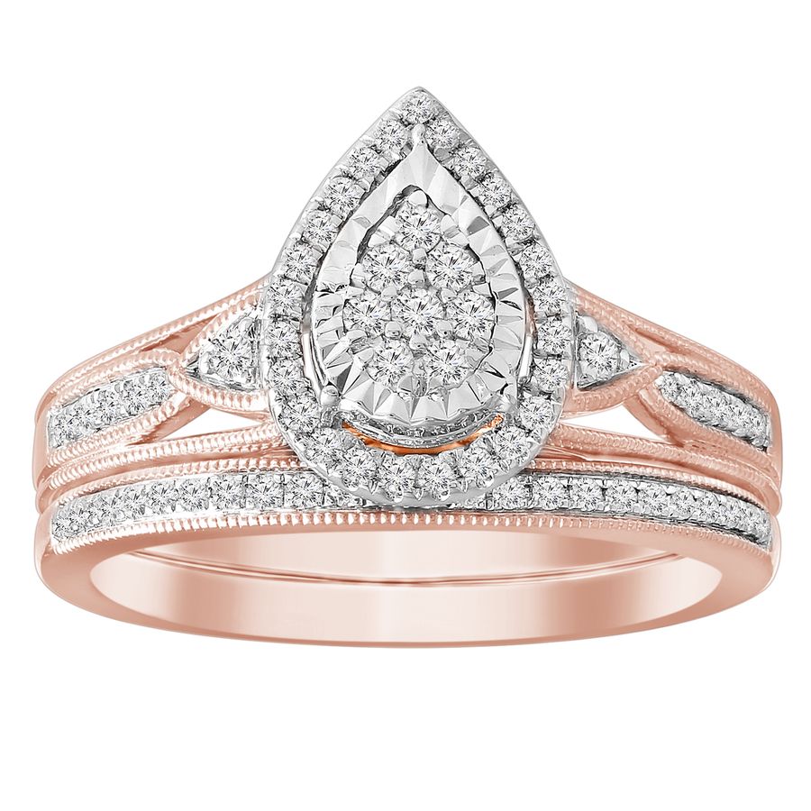 LADIES BRIDAL SET 0.33CT ROUND DIAMOND 10K ROSE GOLD
