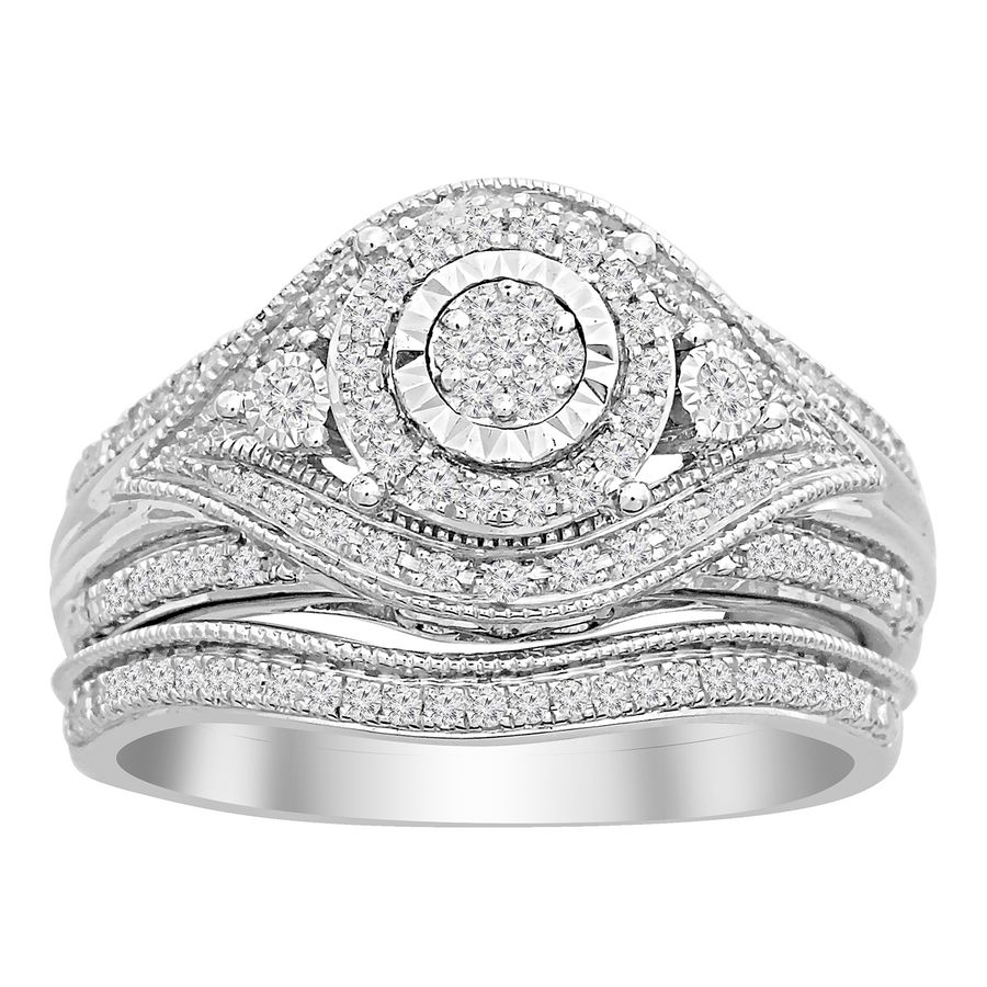 LADIES BRIDAL SET 0.33CT ROUND DIAMOND 10K WHITE GOLD