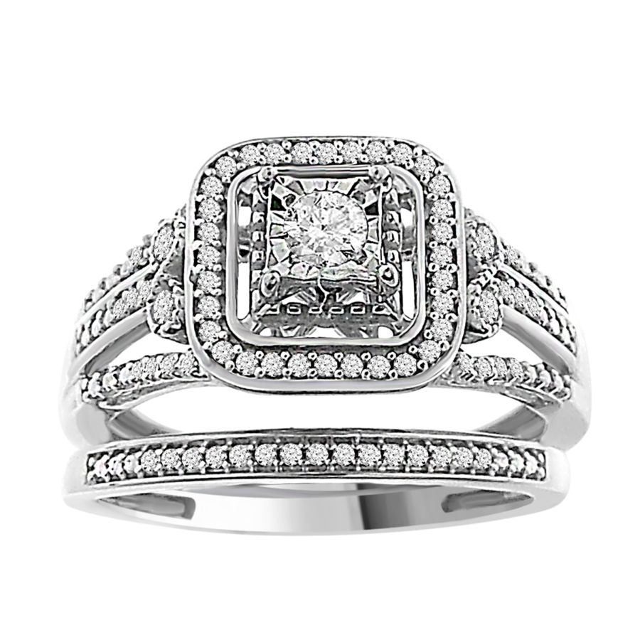 LADIES BRIDAL SET 0.33CT ROUND DIAMOND 10K WHITE GOLD