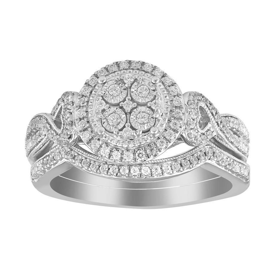 LADIES BRIDAL SET 0.33CT ROUND DIAMOND 10K WHITE GOLD