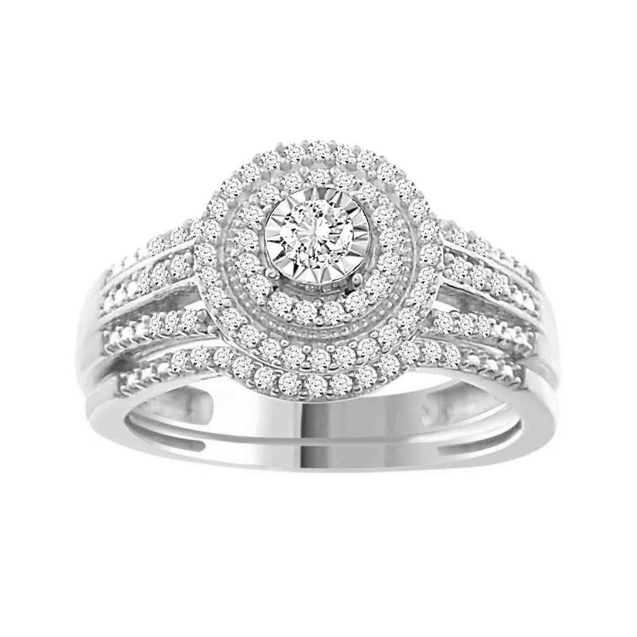 LADIES BRIDAL SET 0.33CT ROUND DIAMOND 10K WHITE GOLD