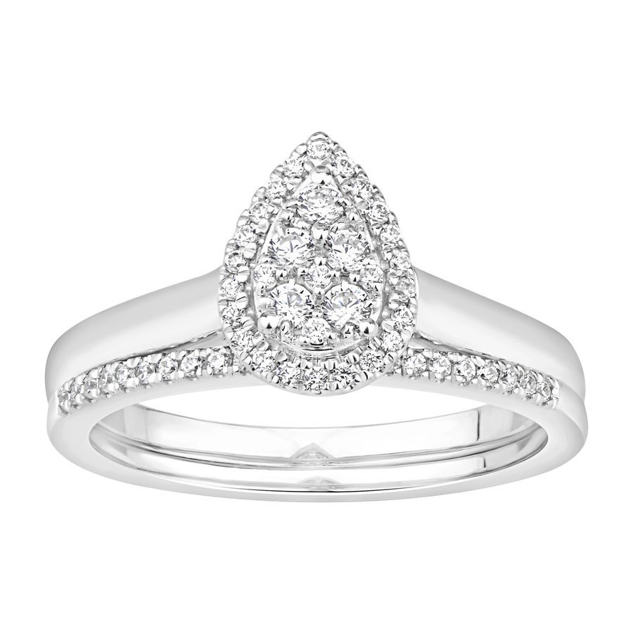 LADIES BRIDAL SET 0.33CT ROUND DIAMOND 14K WHITE GOLD