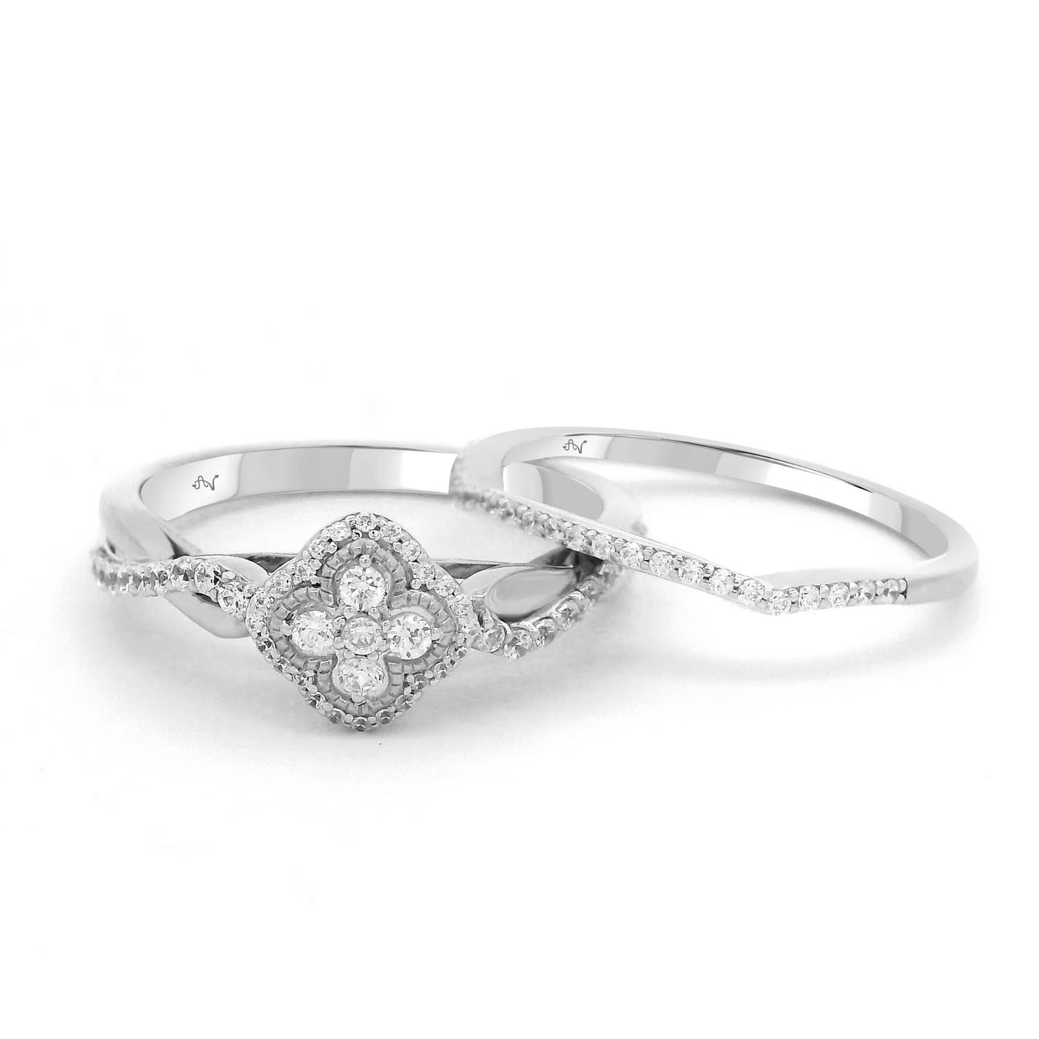 LADIES BRIDAL SET 0.33CT ROUND DIAMOND 14K WHITE GOLD