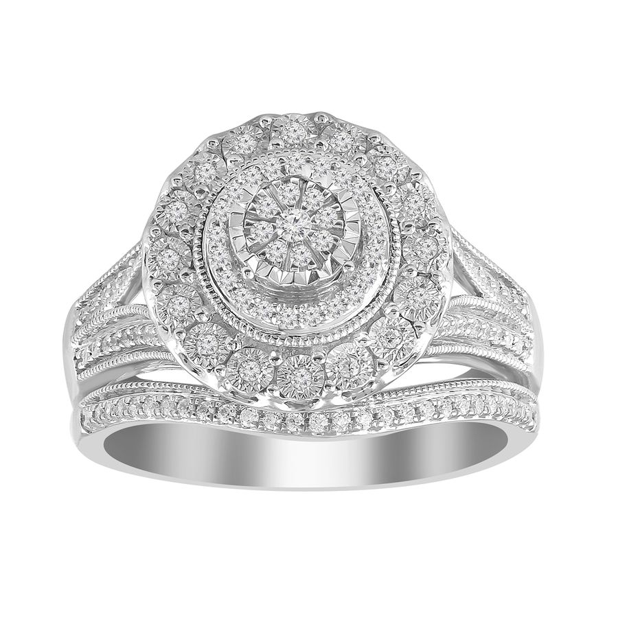 LADIES BRIDAL SET 0.33CT ROUND DIAMOND 14K WHITE GOLD