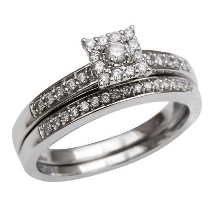 LADIES BRIDAL SET 0.33CT ROUND DIAMOND 14K WHITE GOLD