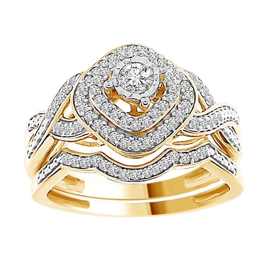 LADIES BRIDAL SET 0.33CT ROUND DIAMOND 14K YELLOW GOLD