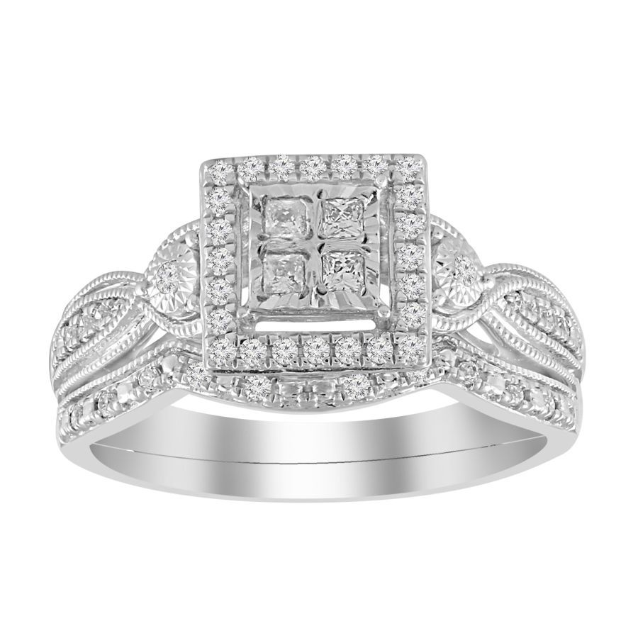 LADIES BRIDAL SET 0.33CT ROUND/PRINCESS DIAMOND 10K WHITE GOLD