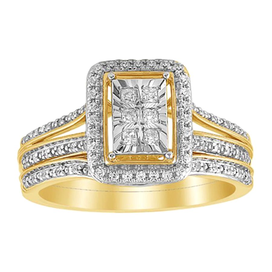 LADIES BRIDAL SET 0.33CT ROUND/PRINCESS DIAMOND 10K YELLOW GOLD