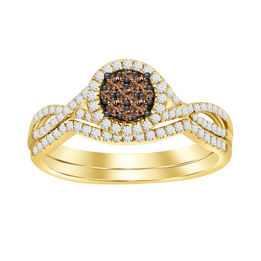LADIES BRIDAL SET 0.35CT ROUND DARK BROWN DIAMOND 10K YELLOW GOLD