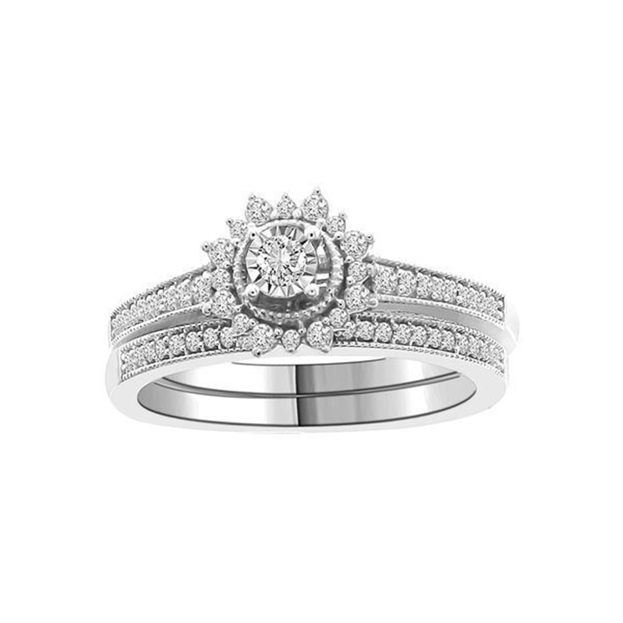 LADIES BRIDAL SET 0.35CT ROUND DIAMOND 10K WHITE GOLD