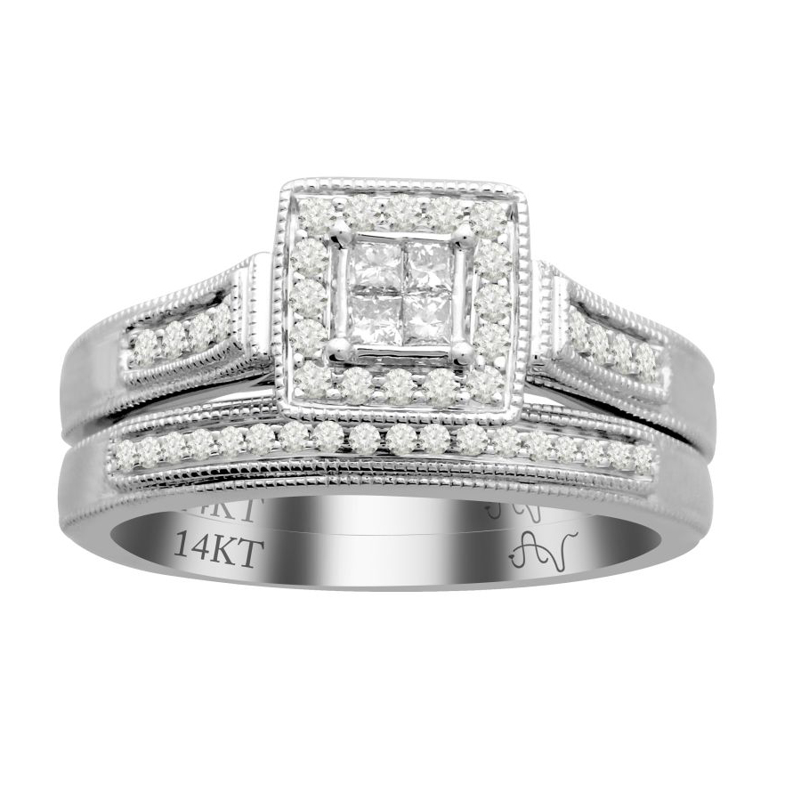 LADIES BRIDAL SET 0.35CT ROUND/PRINCESS DIAMOND 14K WHITE GOLD