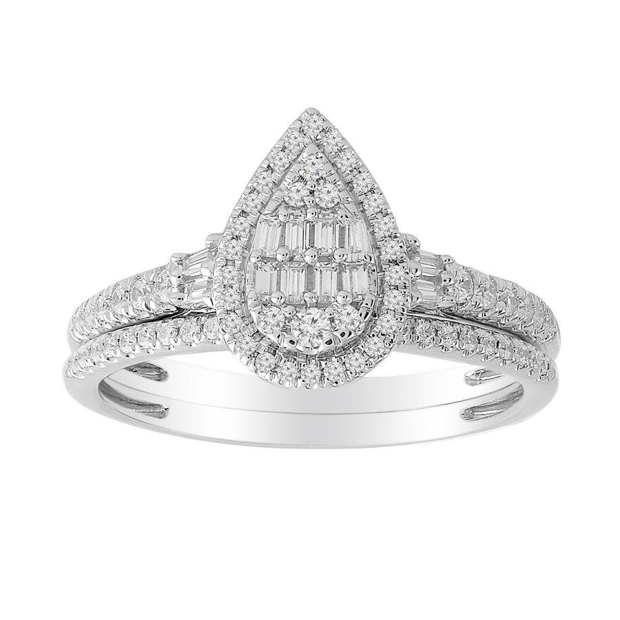 LADIES BRIDAL SET 0.40CT ROUND/BAGUETTE DIAMOND 10K WHITE GOLD