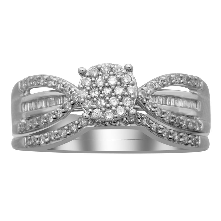 LADIES BRIDAL SET 0.45CT ROUND DIAMOND STERLING SILVER/WHITE GOLD