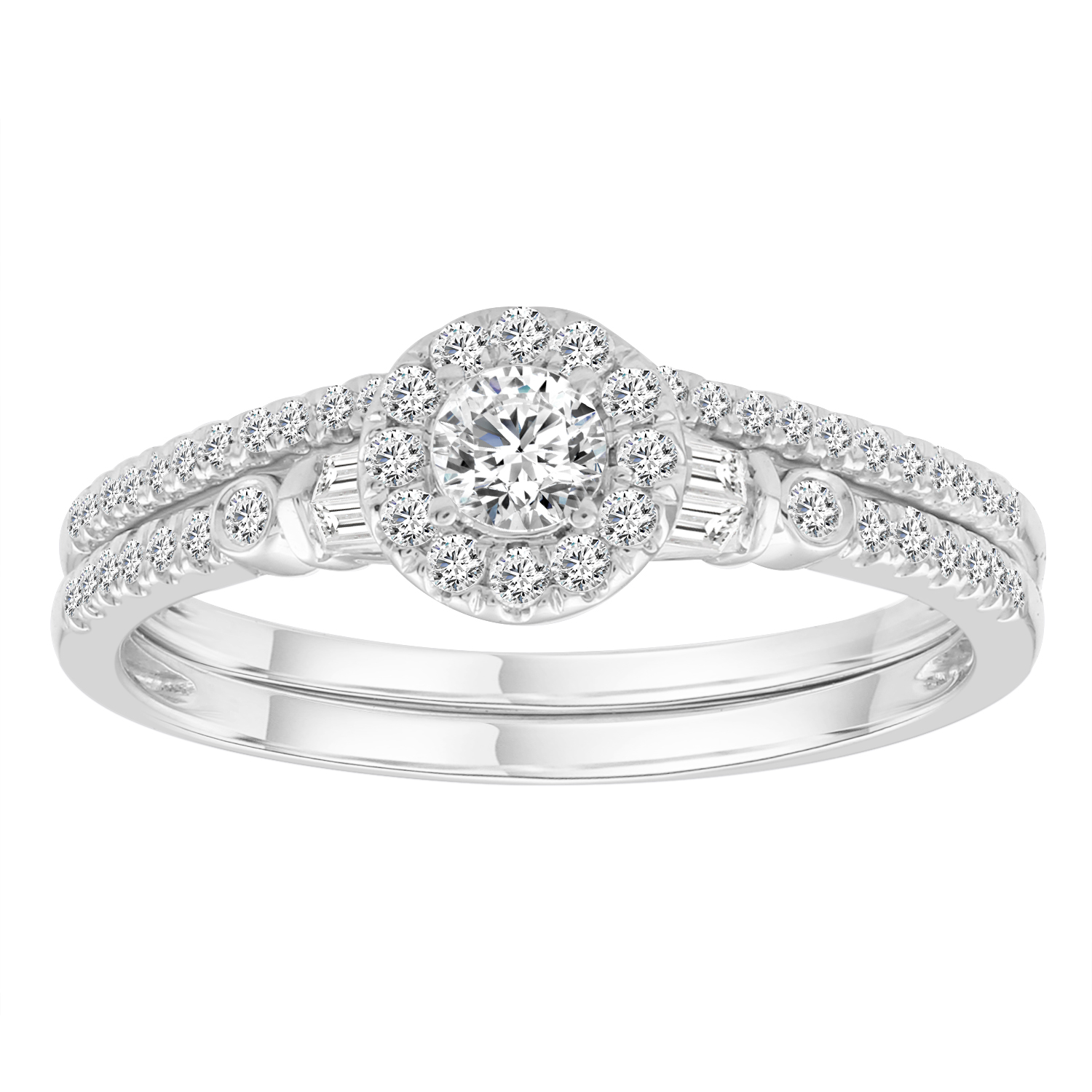 LADIES BRIDAL SET 0.50CT ROUND/BAGUETTE DIAMOND 10K WHITE GOLD