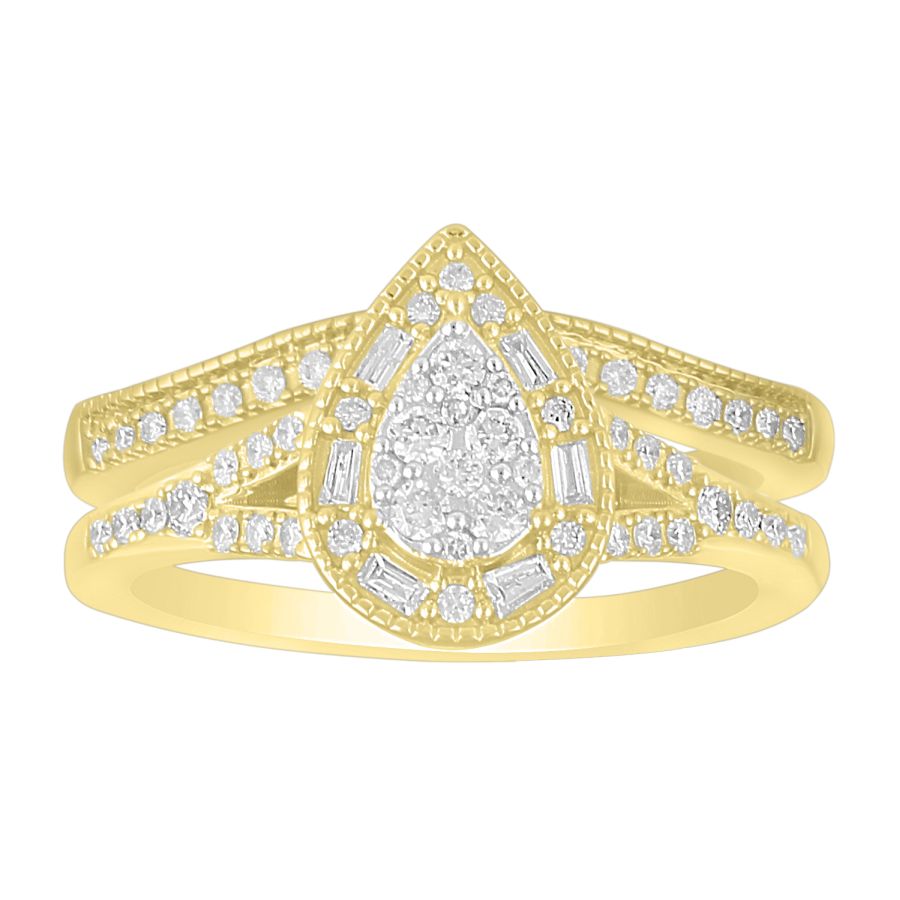 LADIES BRIDAL SET 0.50CT ROUND/BAGUETTE DIAMOND 10K YELLOW GOLD