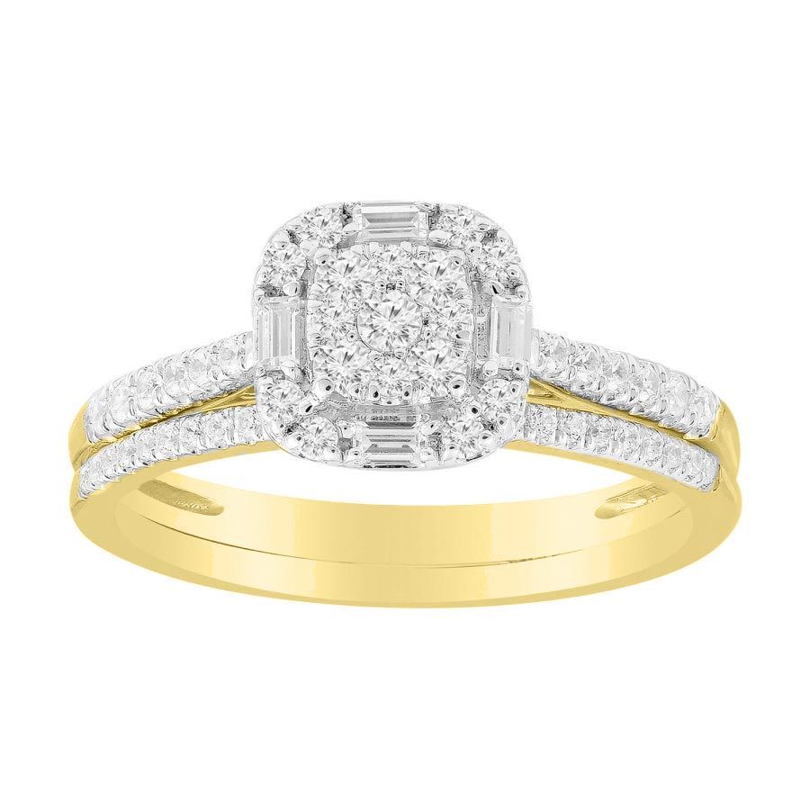 LADIES BRIDAL SET 0.50CT ROUND/BAGUETTE DIAMOND 10K YELLOW GOLD