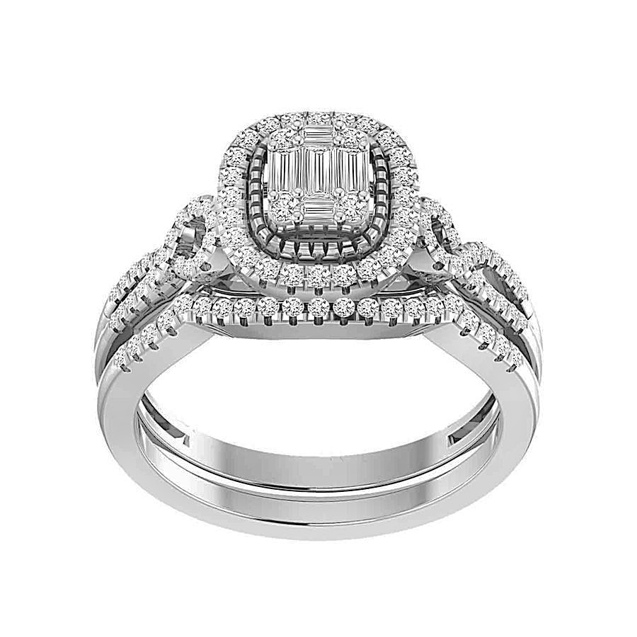 LADIES BRIDAL SET 0.50CT ROUND/BAGUETTE DIAMOND 14K WHITE GOLD (SI QUALITY) $1,309.99