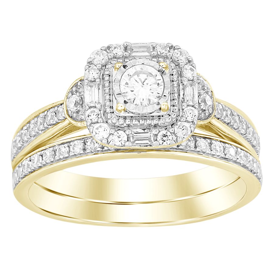 LADIES BRIDAL SET 0.50CT ROUND/BAGUETTE DIAMOND 14K YELLOW GOLD (CENTER STONE 0.50CT ROUND DIAMOND)