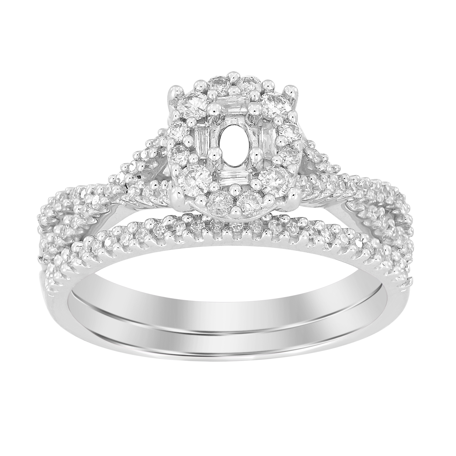 LADIES BRIDAL SET 0.50CT ROUND/BAGUETTE/OVAL DIAMOND 10K WHITE GOLD (CENTER STONE 0.10 CT OVAL DIAMOND)
