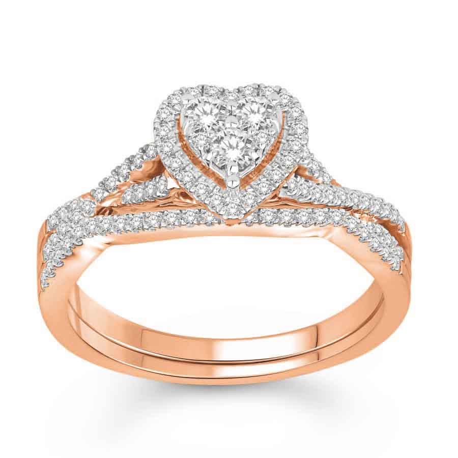 LADIES BRIDAL SET 0.50CT ROUND DIAMOND 10K ROSE GOLD