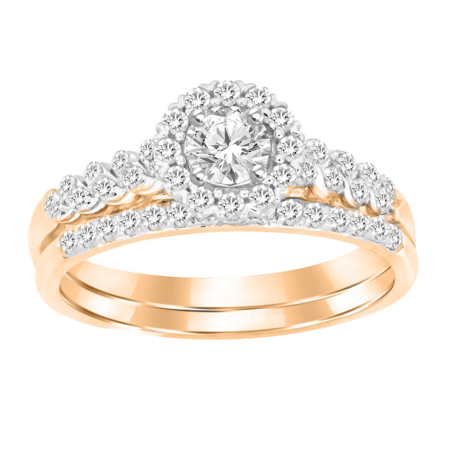LADIES BRIDAL SET 0.50CT ROUND DIAMOND 10K ROSE GOLD
