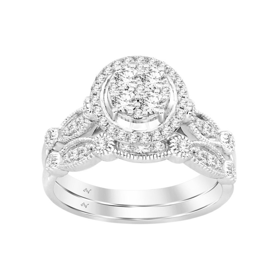 LADIES BRIDAL SET 0.50CT ROUND DIAMOND 10K WHITE GOLD