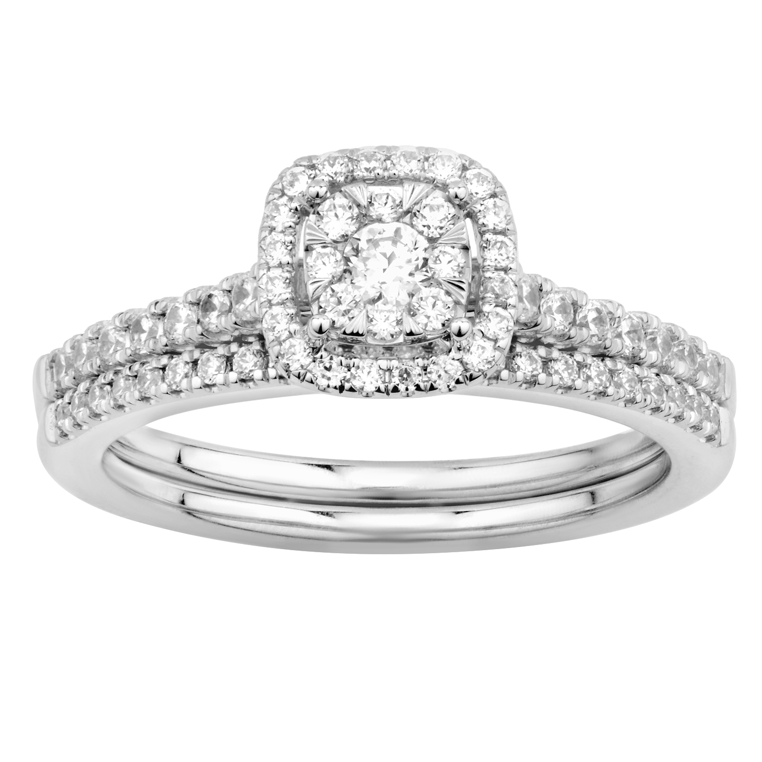 LADIES BRIDAL SET 0.50CT ROUND DIAMOND 10K WHITE GOLD