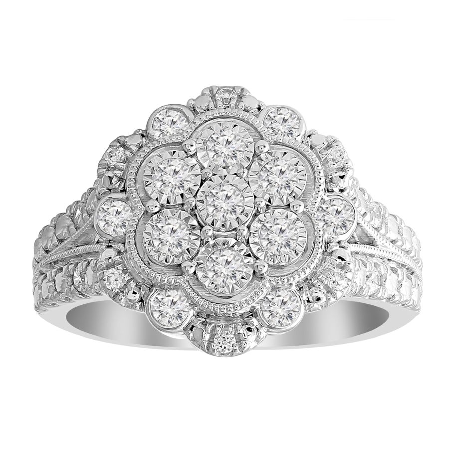 LADIES RING 0.25CT ROUND DIAMOND 10K WHITE GOLD