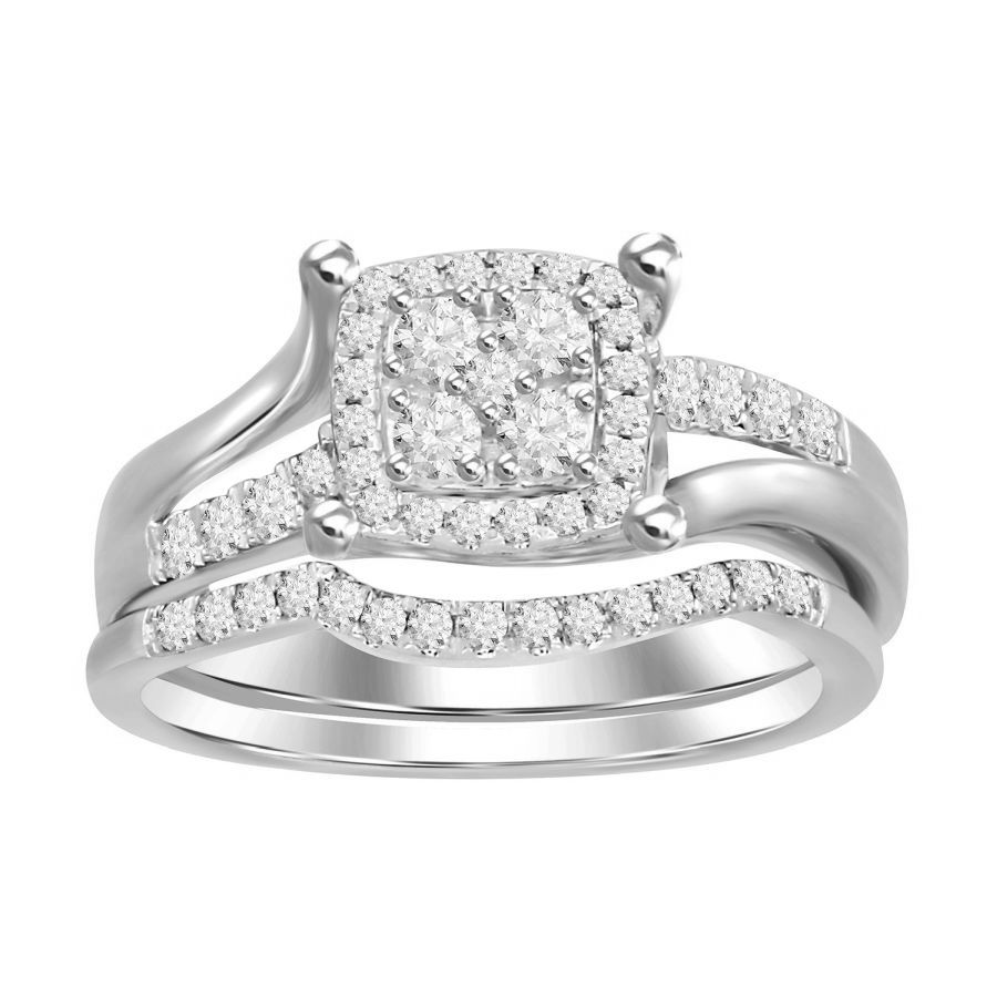 LADIES BRIDAL SET 0.50CT ROUND DIAMOND 10K WHITE GOLD