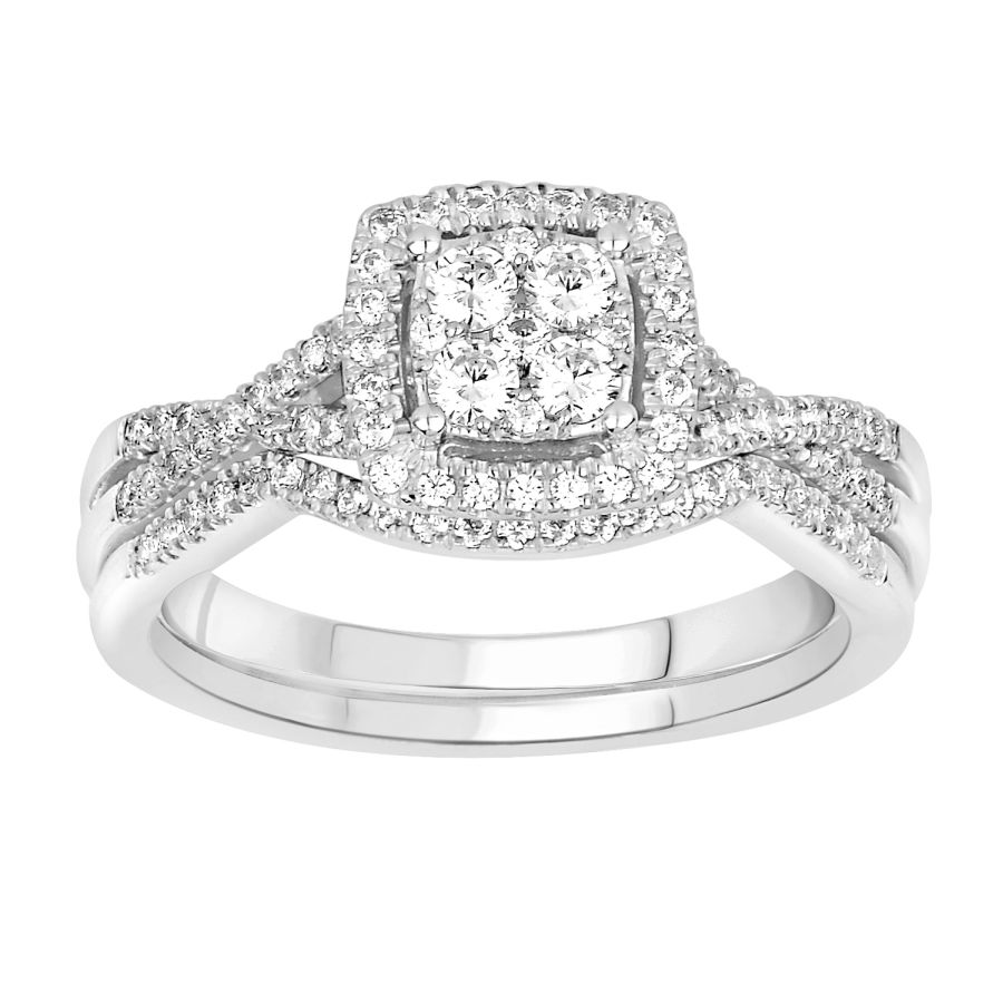 LADIES BRIDAL SET 0.50CT ROUND DIAMOND 10K WHITE GOLD