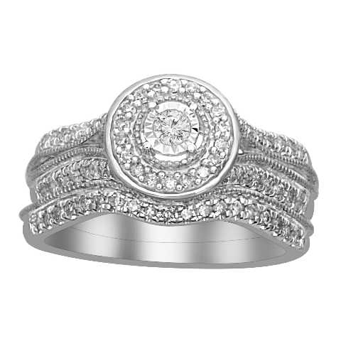 LADIES BRIDAL SET 0.50CT ROUND DIAMOND 10K WHITE GOLD