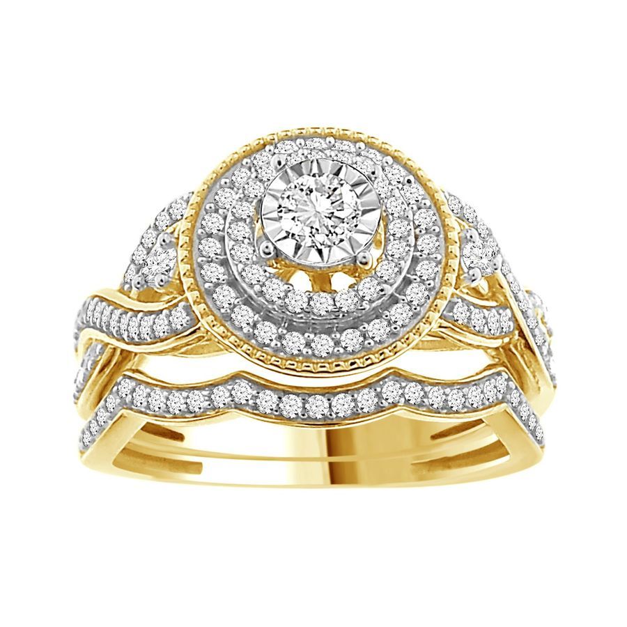 LADIES BRIDAL SET 0.50CT ROUND DIAMOND 10K YELLOW GOLD