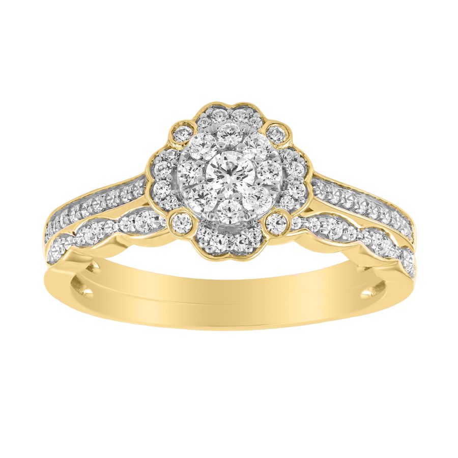 LADIES BRIDAL SET 0.50CT ROUND DIAMOND 10K YELLOW GOLD