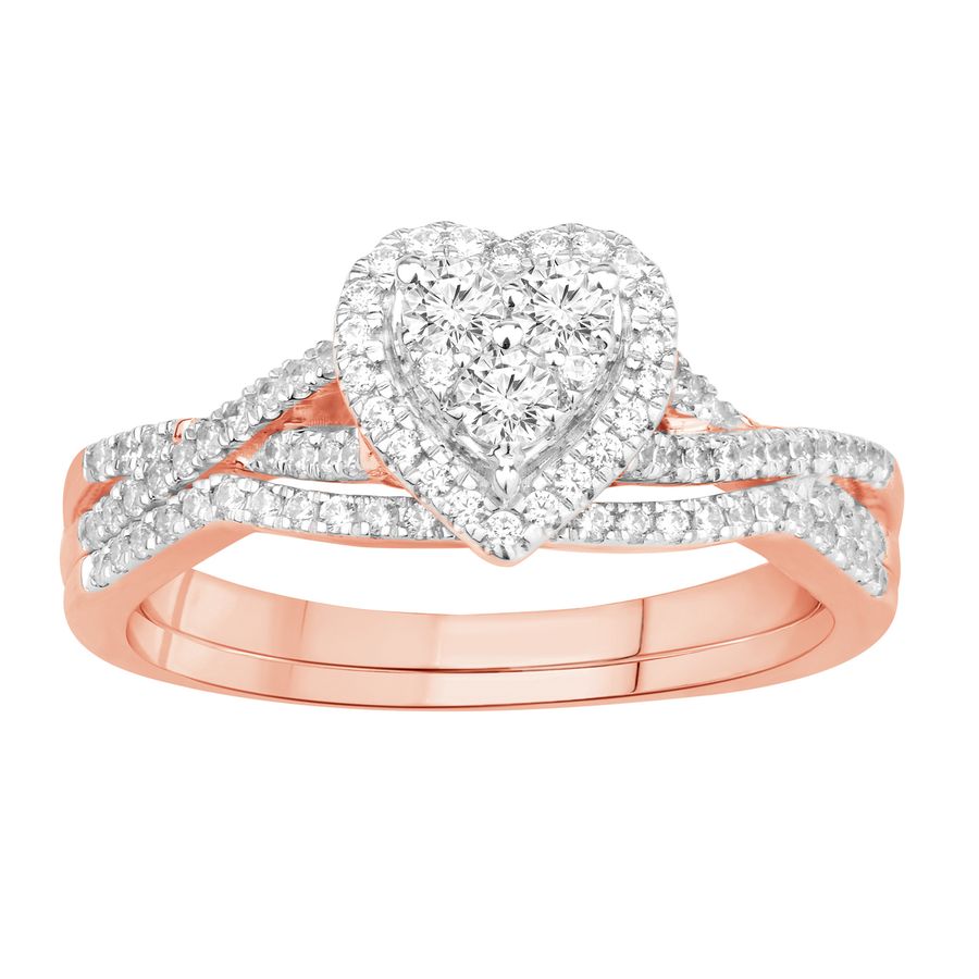 LADIES BRIDAL SET 0.50CT ROUND DIAMOND 14K ROSE GOLD