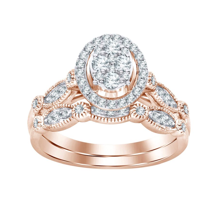 LADIES BRIDAL SET 0.50CT ROUND DIAMOND 14K ROSE GOLD