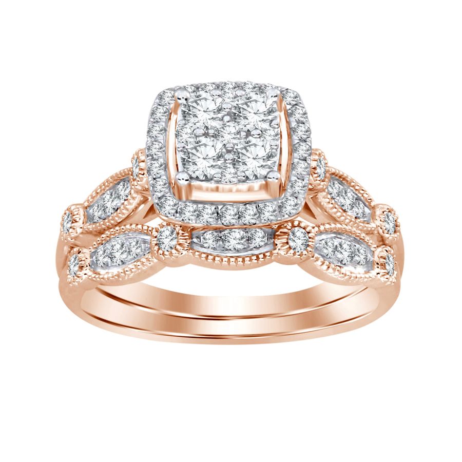 Home Rings LADIES BRIDAL SET 0.50CT ROUND DIAMOND 14K ROSE GOLD