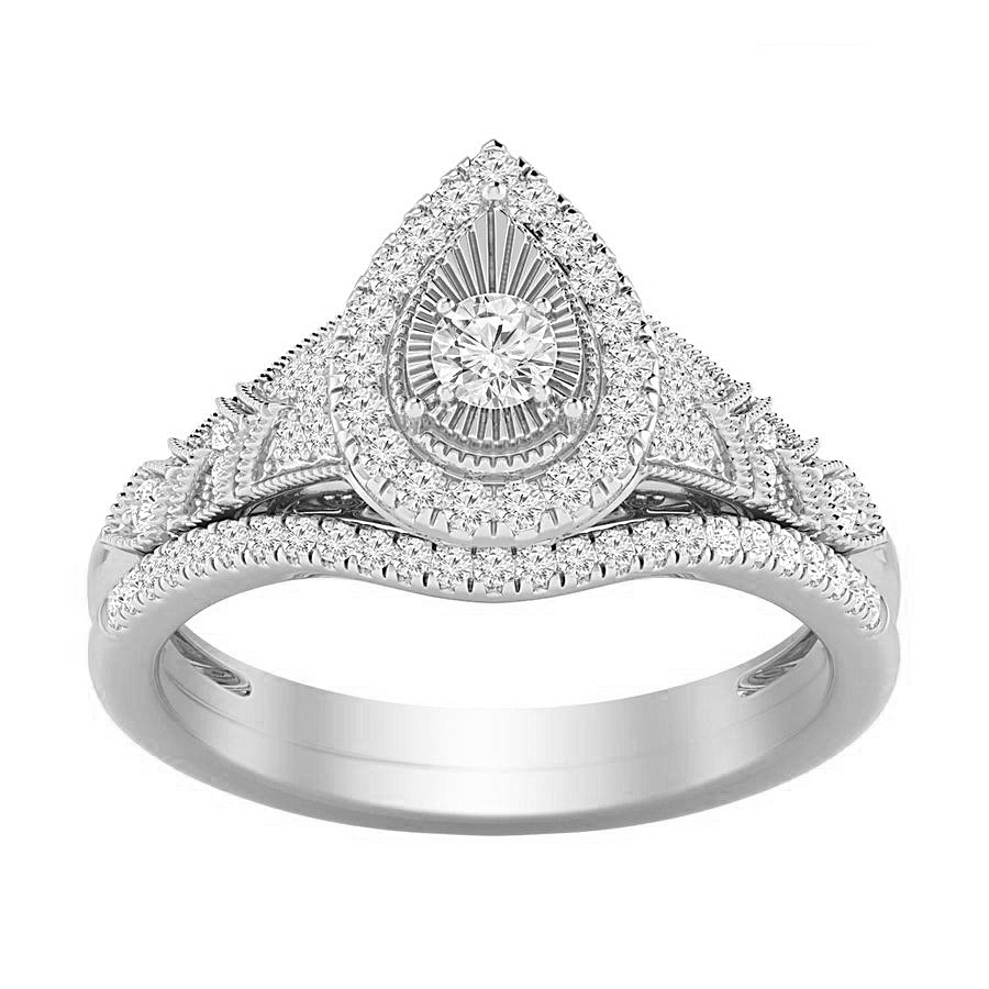 LADIES BRIDAL SET 0.25CT ROUND DIAMOND 10K WHITE GOLD