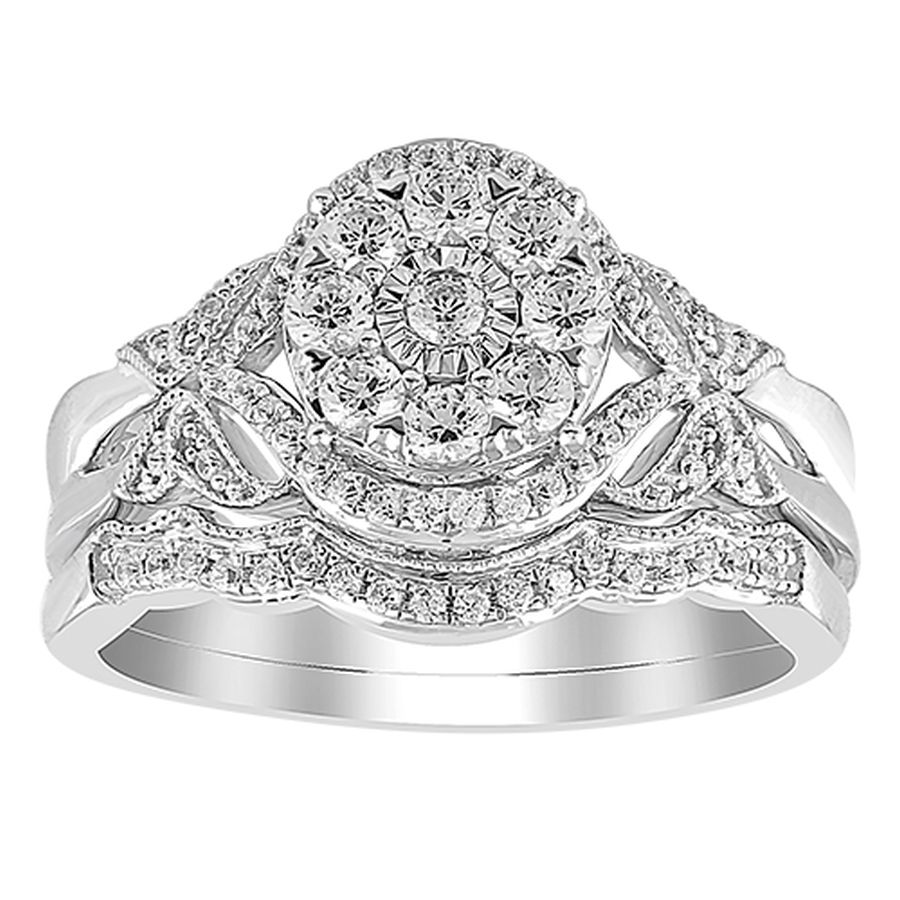 LADIES BRIDAL SET 0.25CT ROUND DIAMOND 10K WHITE GOLD