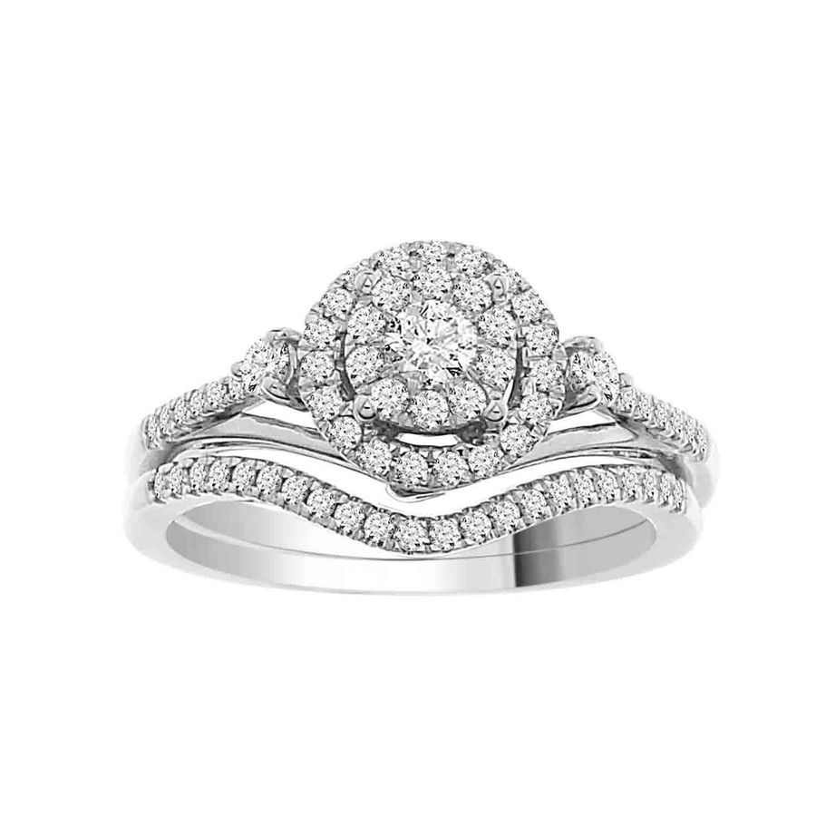 LADIES BRIDAL SET 0.50CT ROUND DIAMOND 14K WHITE GOLD