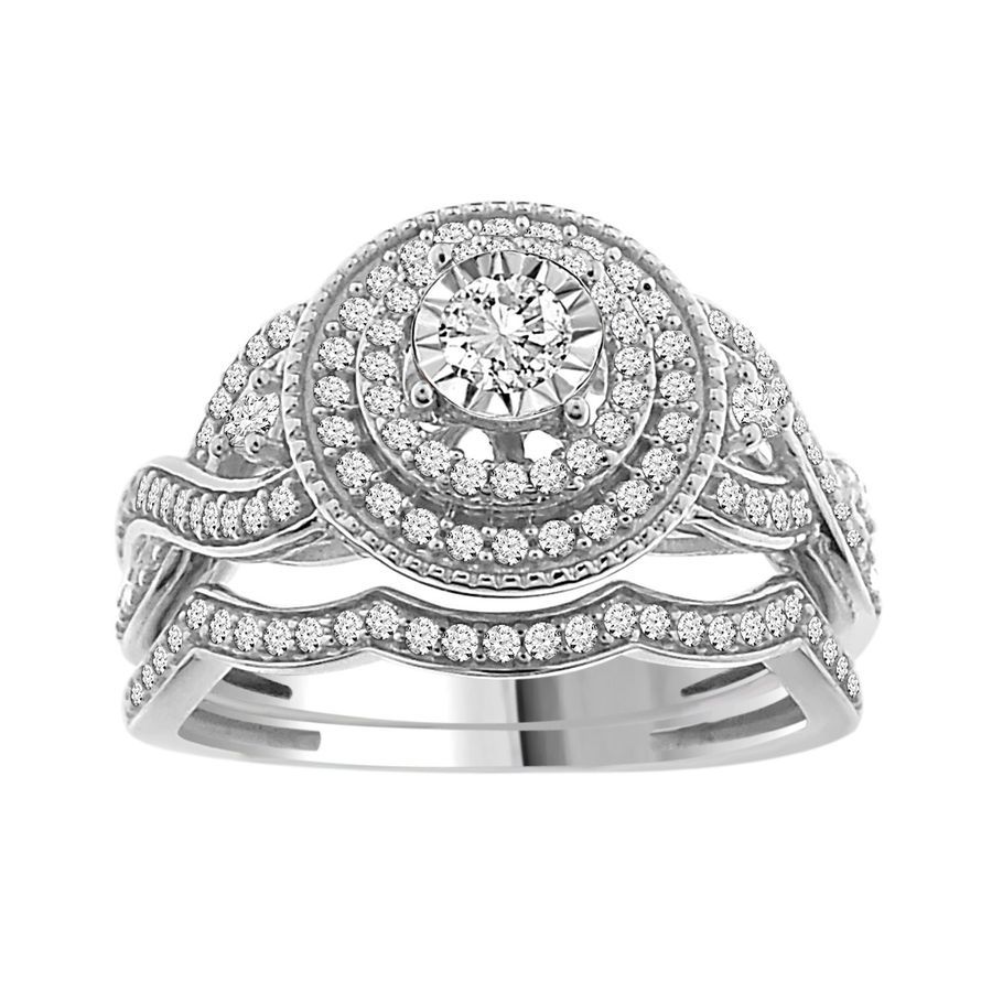 LADIES BRIDAL SET 0.50CT ROUND DIAMOND 14K WHITE GOLD (CENTER STONE 0.10CT ROUND DIAMOND)