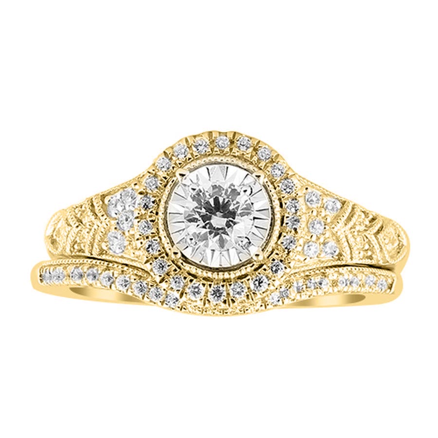 LADIES BRIDAL SET 0.50CT ROUND DIAMOND 14K YELLOW GOLD