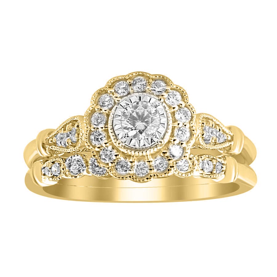LADIES BRIDAL SET 0.50CT ROUND DIAMOND 14K YELLOW GOLD