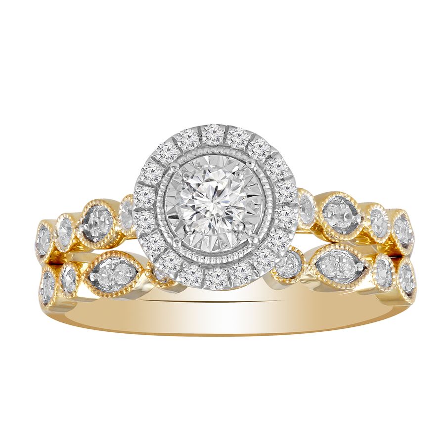 LADIES BRIDAL SET 0.50CT ROUND DIAMOND 14K YELLOW GOLD