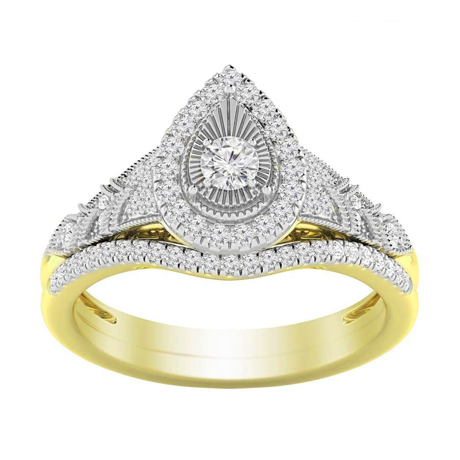 LADIES BRIDAL SET 0.50CT ROUND DIAMOND 14K YELLOW GOLD