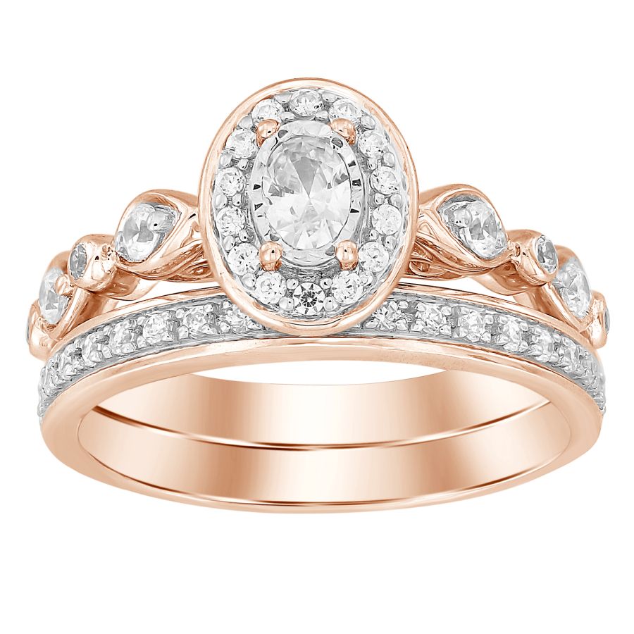 LADIES BRIDAL SET 0.50CT ROUND/OVAL DIAMOND 14K ROSE GOLD