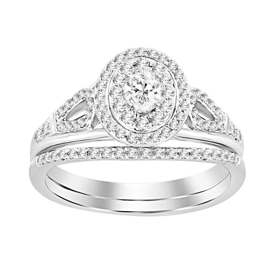 LADIES BRIDAL SET 0.50CT ROUND/OVAL DIAMOND 14K WHITE GOLD