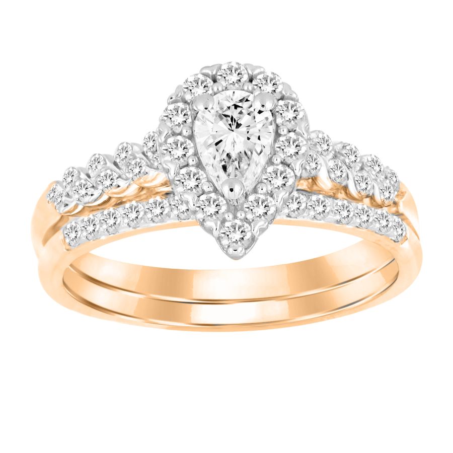 Home Rings LADIES BRIDAL SET 0.50CT ROUND/PEAR DIAMOND 10K ROSE GOLD (CENTER STONE 0.15CT PEAR DIAMOND)