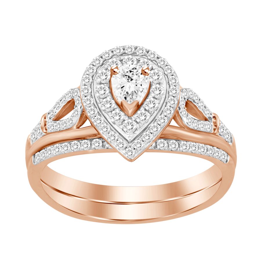 LADIES BRIDAL SET 0.50CT ROUND/PEAR DIAMOND 14K ROSE GOLD (CENTER STONE 0.10CT PEAR DIAMOND)