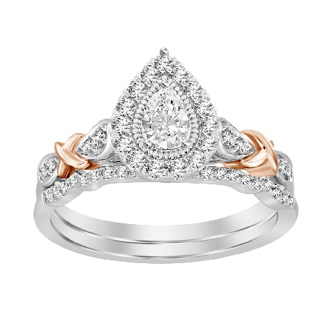 LADIES BRIDAL SET 0.50CT ROUND/PEAR DIAMOND 14K WHITE/ROSE GOLD (CENTER STONE 0.10CT PEAR DIAMOND)